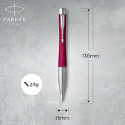 Descubre una escritura llena de estilo y personalidad con el Bolígrafo Parker Urban Vibrant Magenta. Diseñado para quienes buscan destacar, este bolígrafo combina elegancia contemporánea con una presencia audaz.