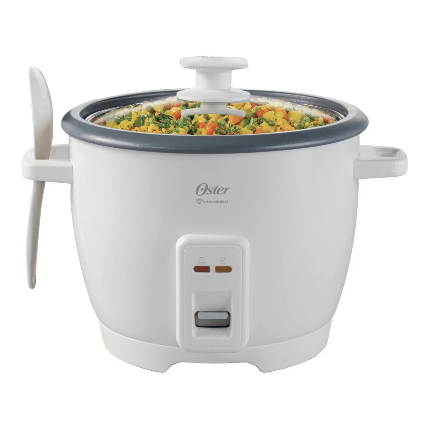 La Arrocera Oster hace que cocinar sea más fácil y sin complicaciones. Su recubrimiento antiadherente Oster DiamondForce evita que el arroz se pegue y es 15 veces más fácil de limpiar*. Además, el recubrimiento no se daña ni se desgasta con el uso**, garantizando una mayor durabilidad. La función automática Mantener Caliente asegura que tus platos siempre estén a la temperatura perfecta. Las asas están diseñadas para sostener la tapa y la cuchara cómodamente. Incluye taza medidora y cuchara para facilitar tus preparaciones.