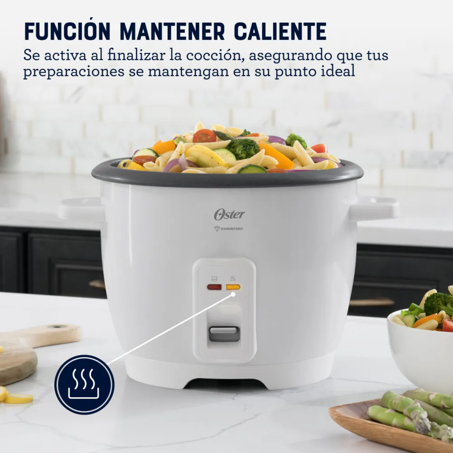 SIEMPRE CALIENTE: La función automática Mantener Caliente se activa al finalizar la cocción, asegurando que tus preparaciones se mantengan en su punto ideal