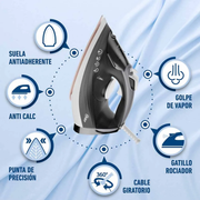 Plancha a Vapor Oster Base Ceramica Grande Gris La Plancha Oster GCSTEP2501 es una herramienta de planchado avanzada diseñada para ofrecer resultados rápidos, profesionales y sin esfuerzo. Su suela ancha y características innovadoras hacen de esta plancha una opción ideal para quienes buscan un planchado eficiente y preciso, además de una excelente relación calidad-precio. - Potencia: - 2200 W: Potente, lo que asegura un calentamiento rápido y un rendimiento constante, permitiendo eliminar arrugas más fácilmente y en menos tiempo. - Suela Ancha de Cerámica Anti-Adherente: - La base ancha de la Oster GCSTEP2501 proporciona una cobertura mayor, lo que permite planchar más rápido y de forma más eficiente, especialmente en superficies grandes como camisas, sábanas o manteles. - Su cerámica antiadherente facilita un deslizamiento suave sobre cualquier tipo de tela, evitando que se quede pegada a la prenda y protegiendo las fibras más delicadas. - Esta suela más ancha distribuye el calor y vapor de manera uniforme, ayudando a eliminar arrugas persistentes sin necesidad de aplicar presión adicional. - Vapor: - Vapor continuo: 30 g/min, proporcionando un flujo constante de vapor para un planchado uniforme. - Vapor en ráfaga: 110 g/min, ideal para arrugas más difíciles y materiales gruesos. - Vapor vertical: Permite planchar prendas colgadas, cortinas o trajes de manera sencilla y sin necesidad de una tabla de planchar. - Capacidad del Estanque de Agua: - 300 ml: El volumen del estanque de agua es ideal para sesiones de planchado prolongadas, ya que permite usar la plancha durante más tiempo sin necesidad de recargar. - Largo del Cable: - 200 cm: El cable de 2 metros de largo proporciona mayor comodidad y libertad de movimiento, permitiendo un uso más versátil sin limitaciones de espacio. - Control de Temperatura: - Ajuste preciso de temperatura: Permite ajustar la temperatura de manera adecuada para diferentes tipos de telas, desde las más delicadas hasta las más gruesas, evitando daños por calor excesivo. - Sistema de ajuste automático de vapor: La plancha ajusta la cantidad de vapor de acuerdo con la temperatura seleccionada, optimizando el consumo de energía y mejorando el rendimiento. - Sistema Antical y Autolimpieza: - Antical integrado: Ayuda a prevenir la acumulación de minerales en el interior de la plancha, lo que mejora su durabilidad y eficiencia. - Función de autolimpieza: Facilita el mantenimiento de la plancha y asegura un flujo de vapor sin obstrucciones, mejorando la experiencia de planchado. - Diseño Ergonómico y Seguro: - Mango ergonómico para un agarre cómodo durante el uso prolongado. - Luz indicadoras que informan sobre el estado de la plancha. Beneficios de la Suela Ancha y Otras Características: 1. Mayor Cobertura y Eficiencia: La base ancha permite planchar una mayor superficie de tela en cada pasada, lo que ahorra tiempo y esfuerzo, ideal para quienes buscan rapidez sin comprometer la calidad del planchado. 2. Distribución de Vapor Uniforme: Gracias a la suela más amplia, el vapor se distribuye de manera más uniforme sobre las telas, lo que mejora la eliminación de arrugas y facilita el planchado de tejidos gruesos o difíciles. 3. Rapidez en el Planchado: Con 2200 W de potencia y una suela ancha, puedes lograr un planchado eficiente en menos tiempo, especialmente en prendas grandes o con arrugas intensas, como sábanas o manteles. 4. Comodidad en el Uso: El cable de 200 cm proporciona un alcance cómodo y libre de limitaciones, mientras que el volumen del estanque de agua de 300 ml te permite planchar durante más tiempo sin interrupciones para recargar.