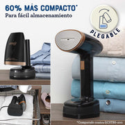 El Vaporizador de prendas de mano plegable Oster refresca convenientemente la ropa, obteniendo óptimos resultados de forma fácil y rápida.