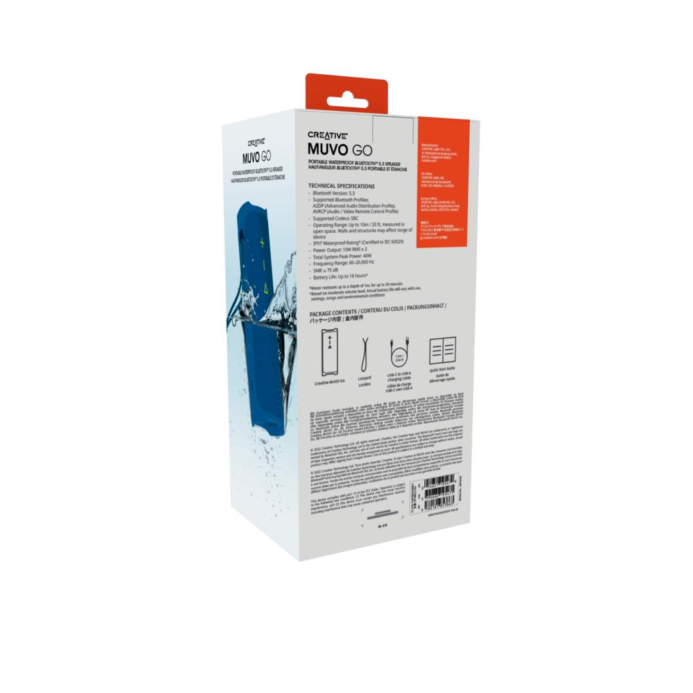 Diseñado para el aire libre, nuestro nuevo Creative MUVO Go resistente al agua con certificación IPX7 está hecho para triunfar en todo tipo de clima y aventuras: senderismo en la montaña, fiesta en la piscina , asado en el patio trasero, lo que sea.