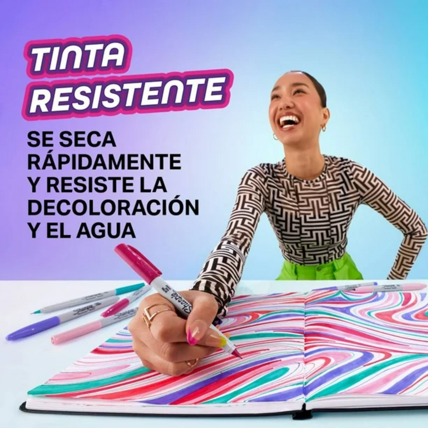 Ruleta Sharpie Glam Pop 30 Marcadores Edicion Limitada Llega la nueva coleccion de Sharpie marcadores permanentes: Glam Pop. Estos marcadores Sharpie de edición especial están hechos para escribir prácticamente en la mayoria de las superficies. La colección Glam Pop presenta colores intensamente brillantes que hacen que tu idea destaque sin importar en qué superficie estés marcando. Sharpie, el marcador permanente original, tiene una tinta icónica que se seca rápidamente y resiste tanto el agua como la decoloración. Los marcadores de punta fina Sharpie cuentan con una punta versátil para realizar marcas impresionantemente audaces y detalladas.30 colores disponibles en marcadores punta fina. Incluye 2 nuevos colores ideal para los coleccionistas Sharpie. Marcadores permanentes Sharpie con tinta que marca en papel, plástico, metal y la mayoría de las demás superficies. Los colores Glam Pop presentan tonos brillantes y llamativos de cada tono para marcas vibrantes. La tinta notablemente resistente se seca rápidamente y resiste la decoloración y el agua. La punta fina infinitamente versátil crea marcas impresionantemente audaces y detalladas. 30 marcadores permanentes en colores variados